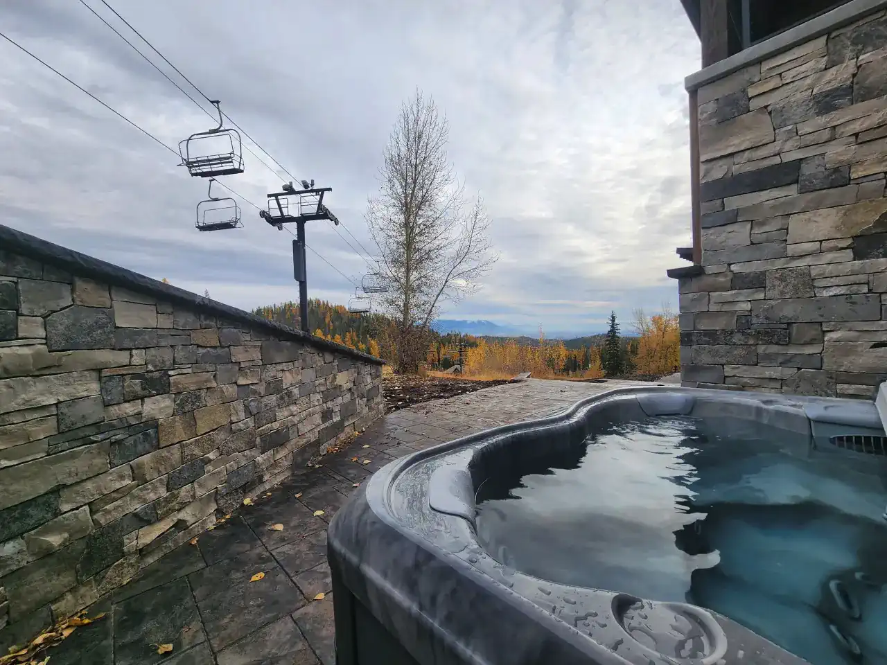 Anywhere on the front slope of the resort, find The Home Again Trail. Just past the Chair 3 ski run of the Home Again Trail you will take the Elk Highlands private ski Trail close to the back of the home, cross the street and ski down the hill directly to the back yard where the hot tub is located